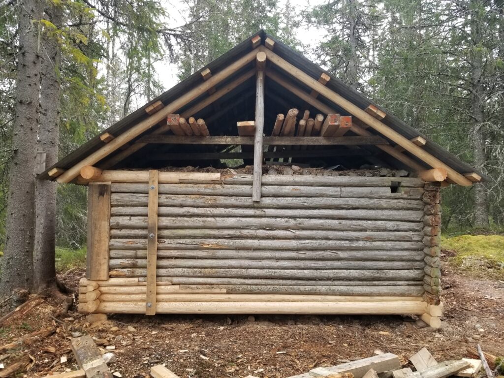 Används som rastkoja på en vandringsled på Hovfjället. Vi har bytt timmer, bytt delar av fasadpanelen, renoverat fönstren och tillverkat hängrännor i trä bland annat.
