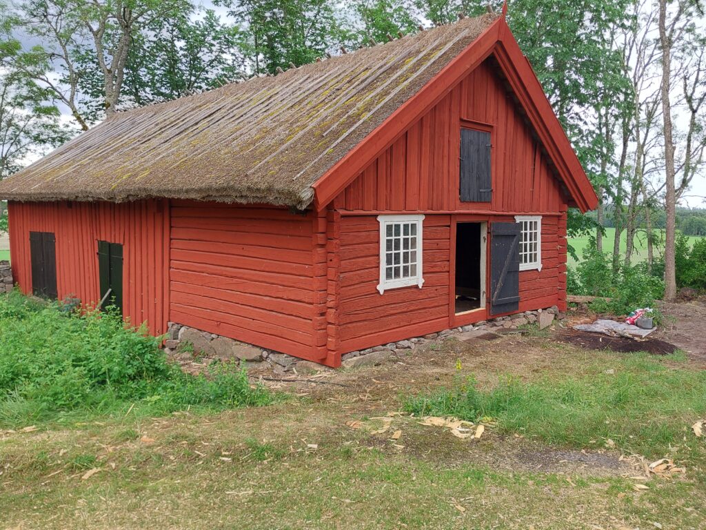 Reparationsarbeten gjordes på stommen på ett av uthusen.